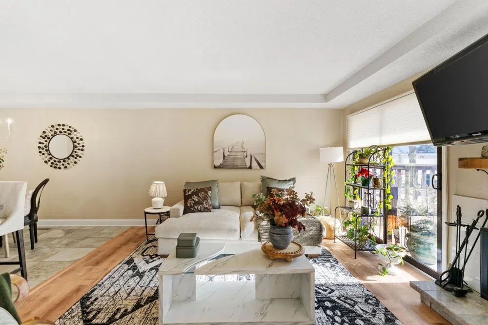 This end unit is ready for immediate move-in, complete with a large private patio and easy access to the garage. The main floor includes a separate laundry room with stackable washer and dryer. The living room is spacious and bright, with a sliding glass door to the patio and a cozy wood burning fireplace. Updates include a newer air conditioner/furnace combo unit, dishwasher, and garbage disposal. Located just south of downtown Hopkins, this home offers convenient access to the light rail, uptown and downtown Minneapolis, Nine Mile Creek Regional Trail, parks, and shopping centers. Residents can enjoy the outdoor heated pool, kiddie pool, and community playground. This association permits rentals, allows up to two pets, and is FHA approved. Welcome to your new home!