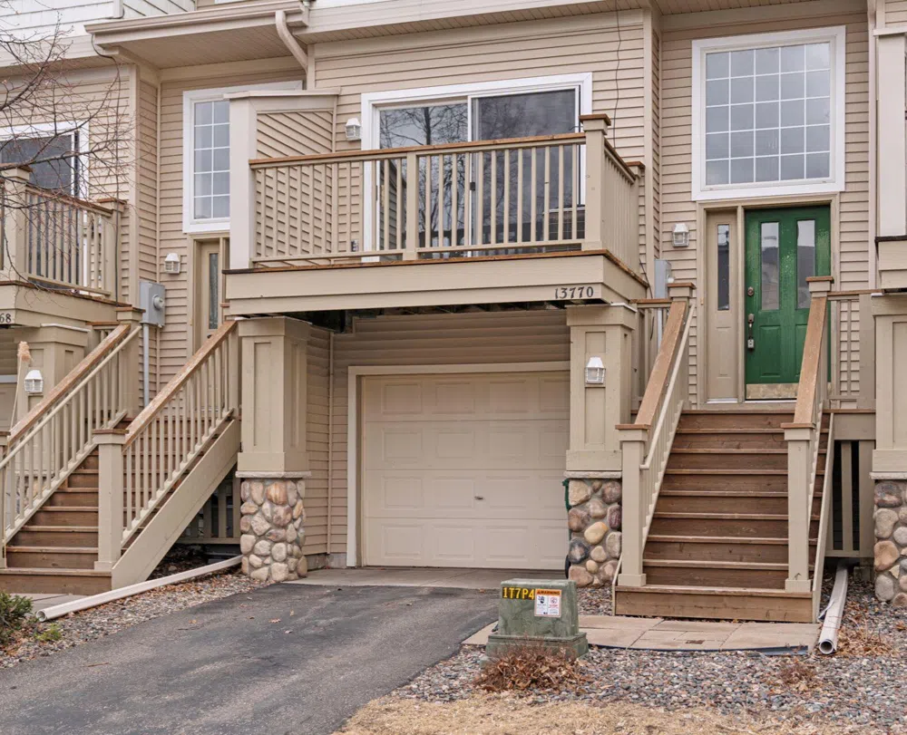 So many updates make this townhome move-in ready! The kitchen features new fridge (2025), microwave (2025), dishwasher (2023), range (2023), faucet (2025), and contemporary tile backsplash. Adjacent to kitchen, there is a 1/2 bath with contemporary pedestal sink. Throughout the home you will find new light fixtures (2025), brand new carpet on stairs and upper level. A fresh coat of paint was just applied to walls and ceiling. A beautiful new bathroom vanity, counter, faucet, light fixture, and mirror were installed February, 2025 in the upper-level full bathroom. In the bedrooms you will find brand new, attractive ceiling fans. The upper level has a spacious primary bedroom with a large walk-in closet. Down the hall, you'll find the second bedroom which could also serve as a home office or den. On the lower level, a finished laundry room opens to the utility area. Mechanical updates include furnace (2023), AC (2023). Roof replaced 2023 and siding replaced 2024. Move in and enjoy!