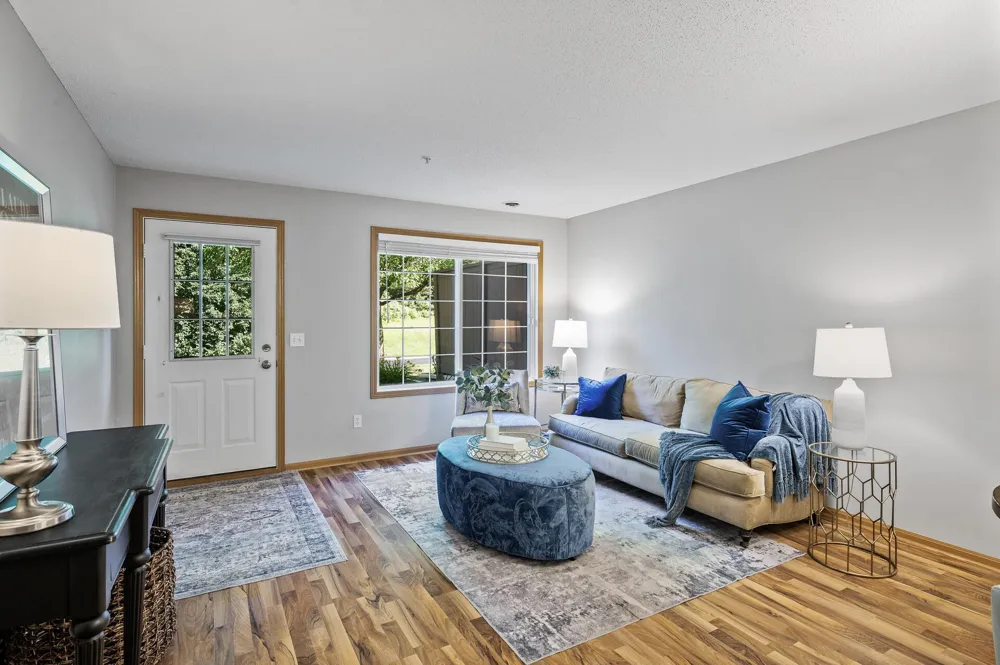 Extraordinary end unit townhome in a highly desirable location in Eden Prairie. While close to shopping and other amenities, this unique property has a private and peaceful side patio and yard surrounded by nature. Two spacious bedrooms with plenty of storage space and an upstairs bonus room, which could be used for a home office or additional lounge. Appliances, door hardware and light fixtures have all been updated. (2016) Washer & Dryer, (2017) Kitchen Appliances, (2020) Kitchen Countertops, Bathroom Vanity & Vanity Top, Toilets, (2022) Air Conditioner & Garage Door, (2023) Furnace & Water Heater, (2024) Garage Door Opener. BEAUTIFUL NEW LIVINGROOM FLOOR! This home is truly move in ready and waiting for the next owner to appreciate and enjoy.